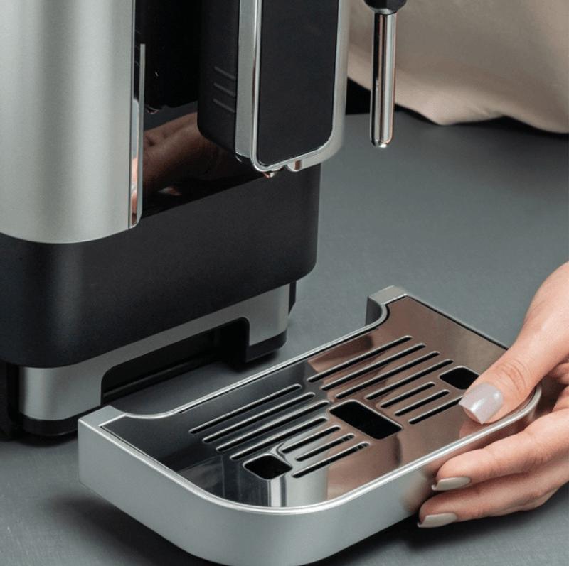 moedor de grãos integrado em 5 níveis de moagem. Mói o grão na hora e prepara o